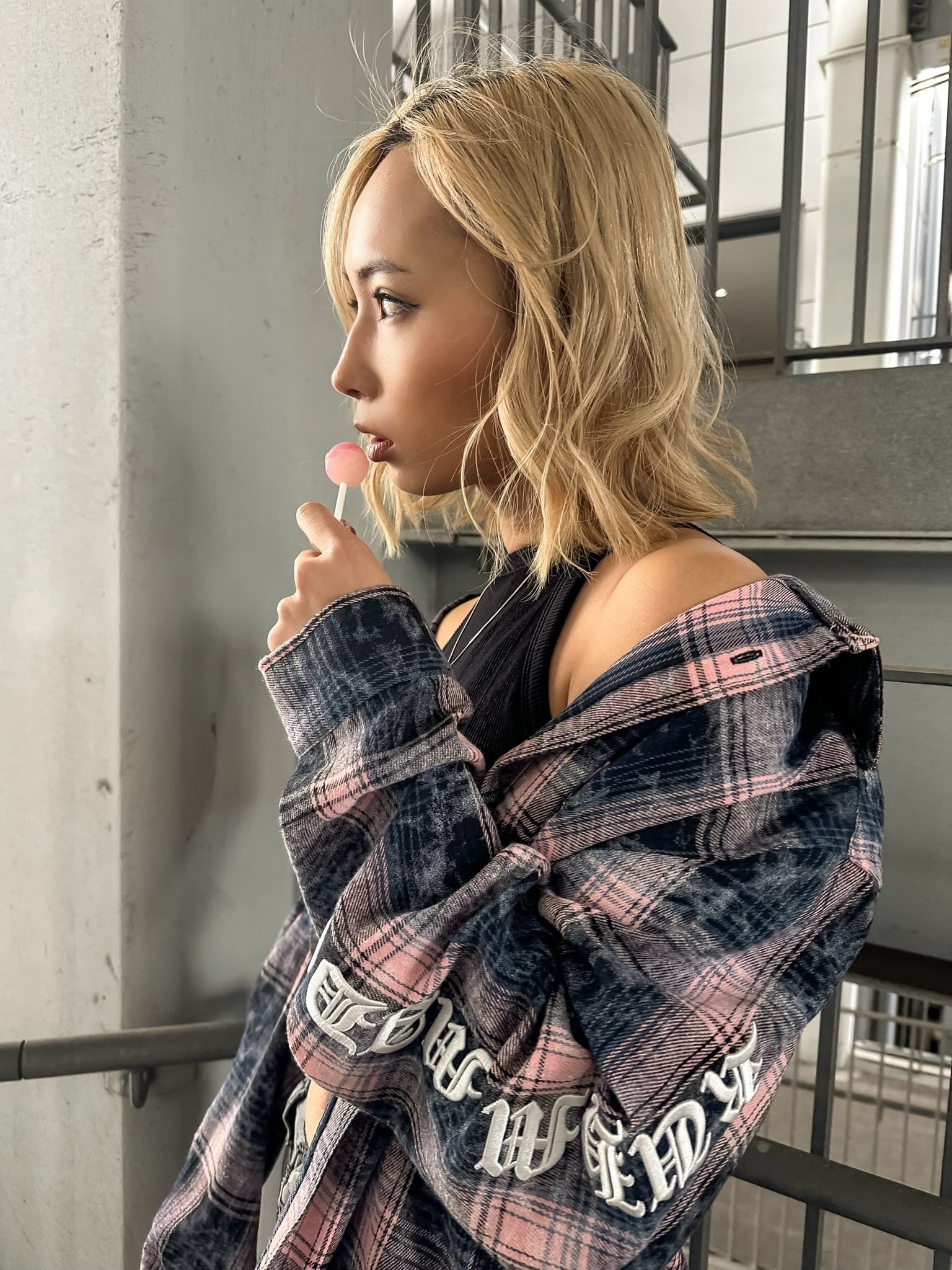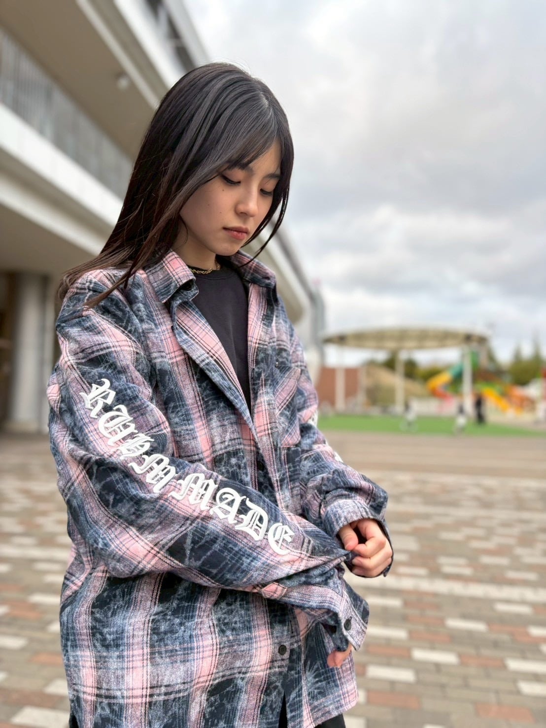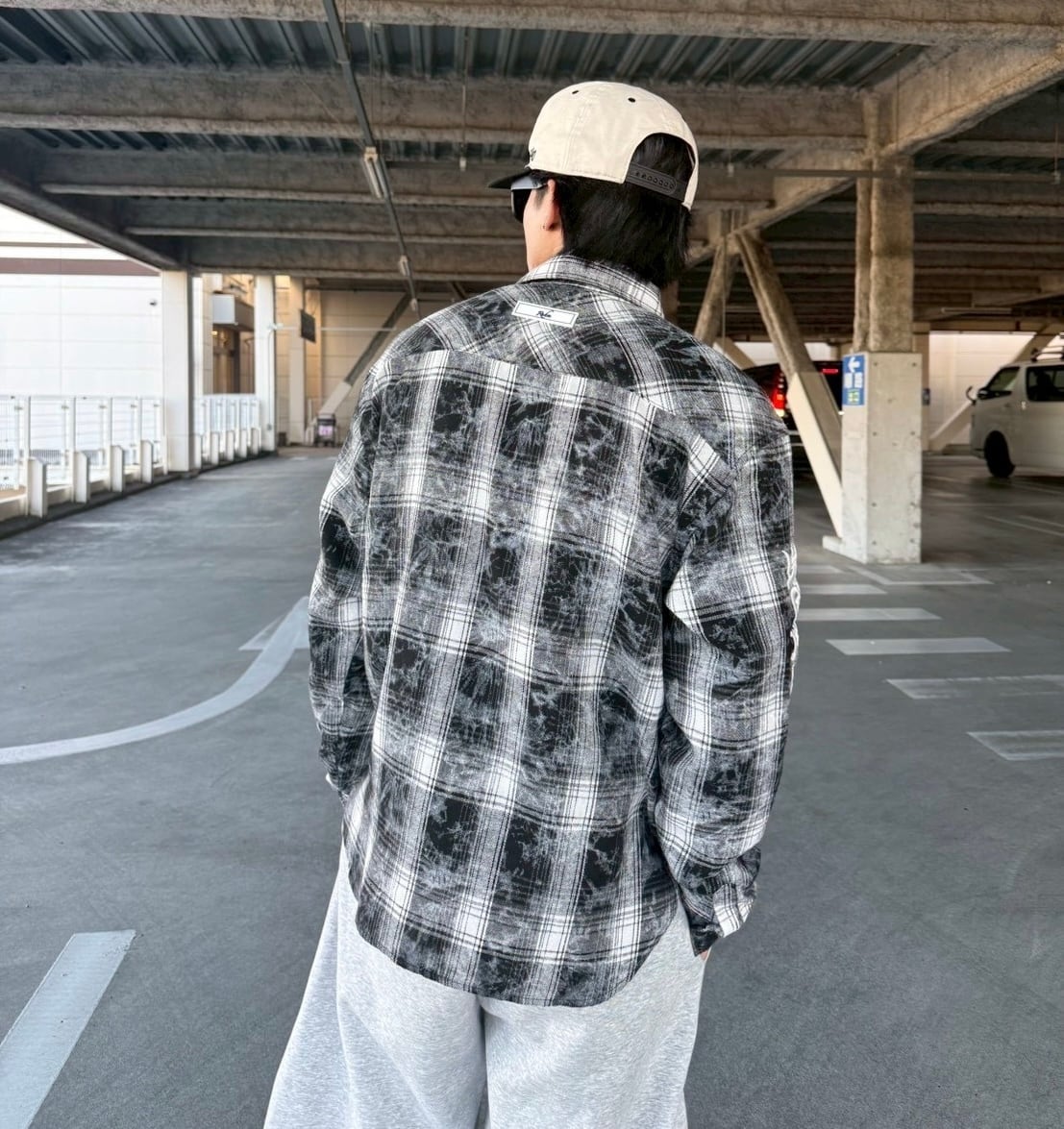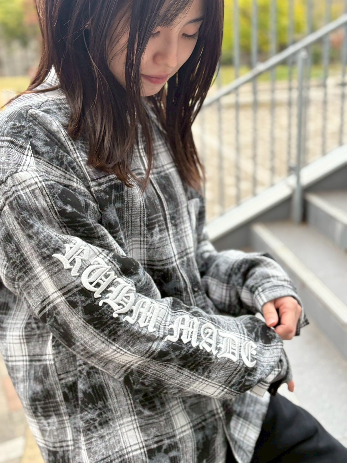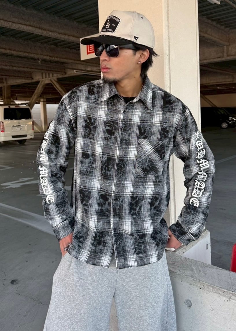 Ruhm3D刺繍ロゴブリーチチェックシャツ