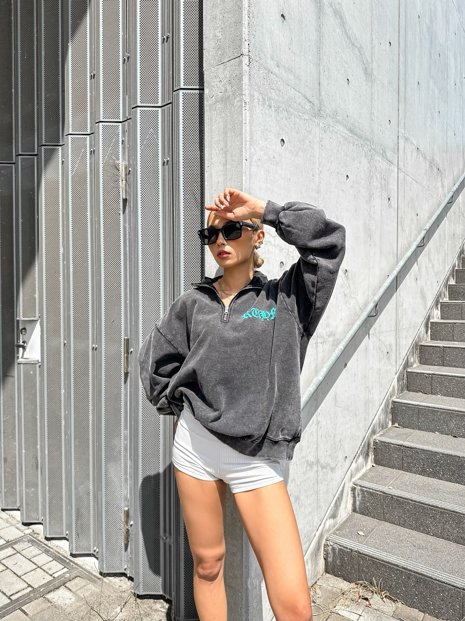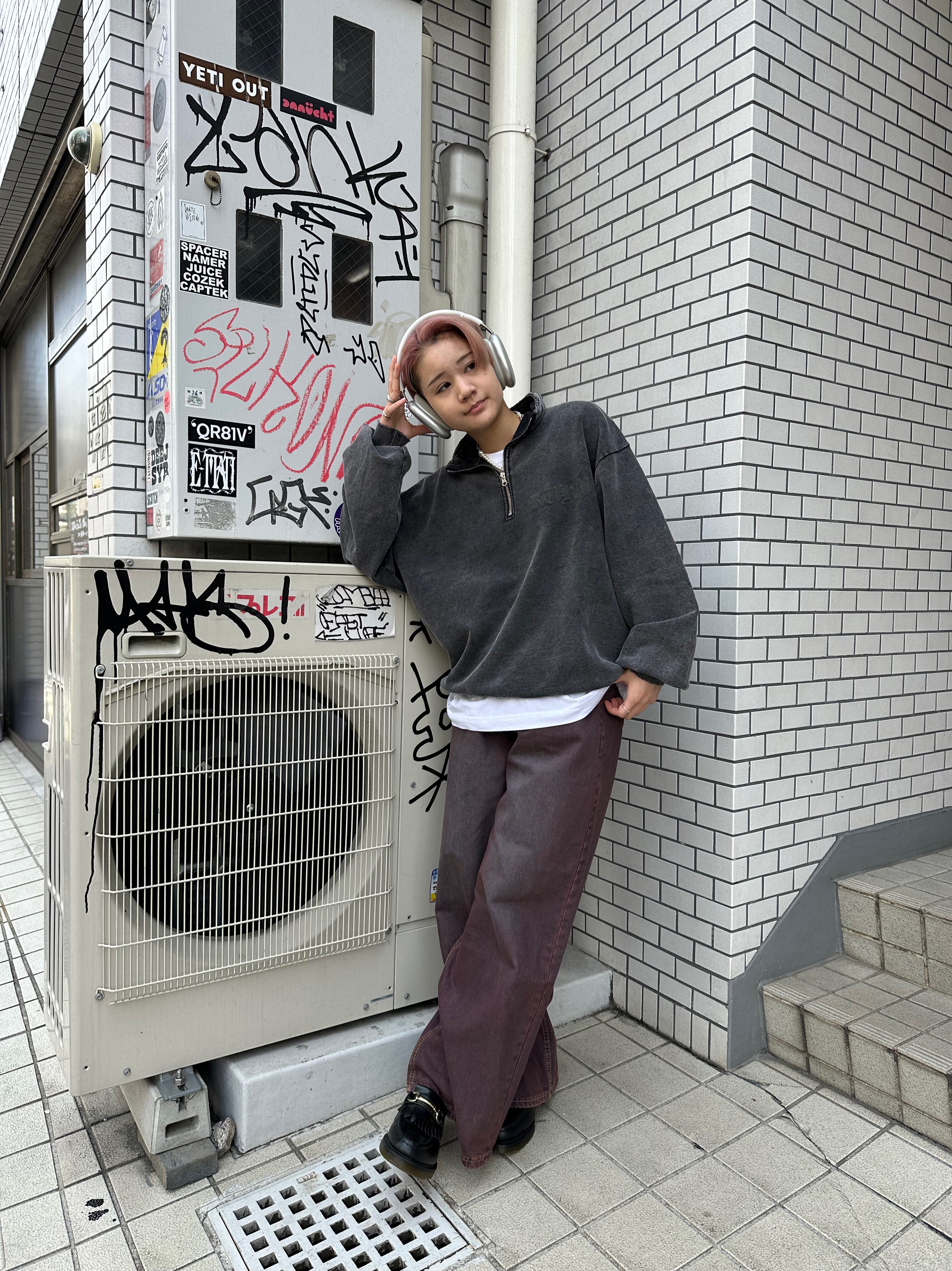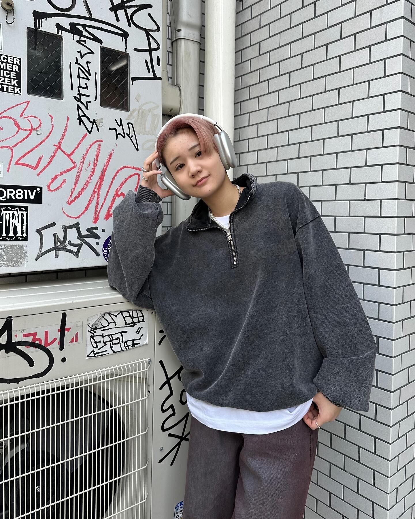 パウダーブリーチで濃淡がはっきりとした加工感が表現されたハーフジップ。
